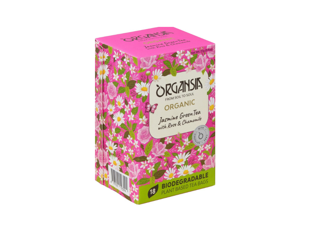 Jemná harmónia zeleného čaju, jazmínu, ruže a harmančeka prináša upokojujúci a osviežujúci zážitok v každej šálke. Zemitosť zeleného čaju sa snúbi s kvetinovou eleganciou arómy jazmínu a ruže, zatiaľ čo harmanček dodáva nádych prirodzenej sladkosti a jemnosti. Ideálna voľba pre chvíle pokoja a relaxácie. Organsia je nová značka bio čajov zameraných na kvalitu surovín a udržateľnosť životného prostredia. 1 % z všetkých príjmov bude investovaných späť do ochrany prírody a vodných zdrojov pre budúce generácie. Čajové vrecká z abakových vlákien sú kompostovateľné.