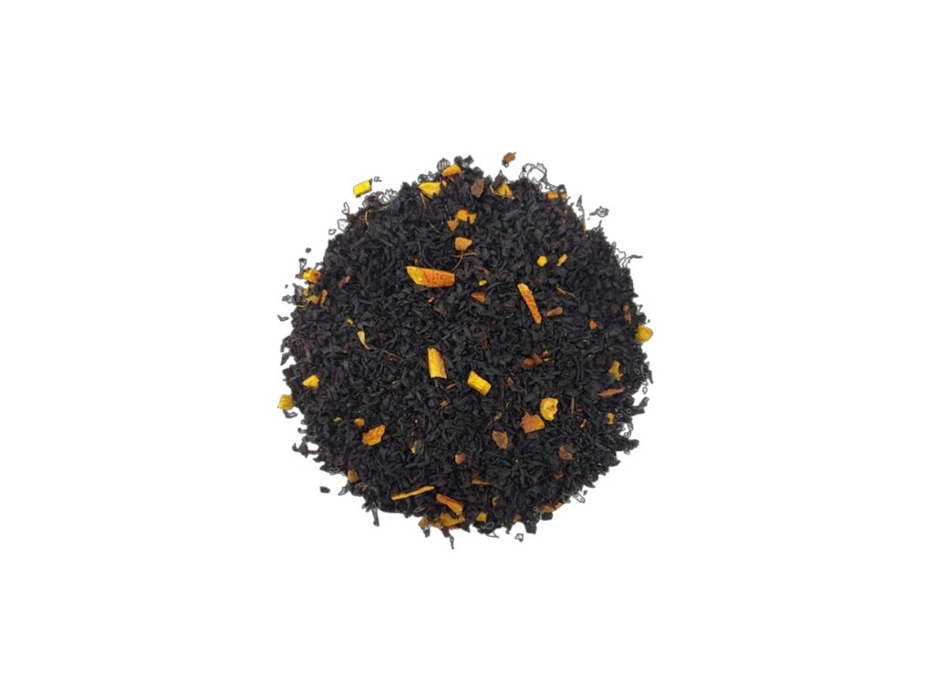 Zloženie: čierny čaj BOP 84%, pomarančové ovocie 5%, koreň zázvoru 3%, škorica 2%, aróma (chai, pomaranč)