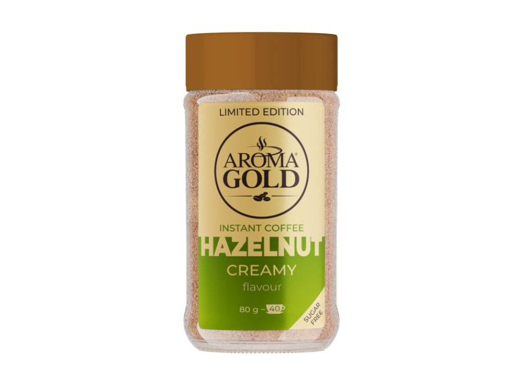 Zloženie: instantná mletá káva (robust) 95%, lieskovooriešková aróma 5%