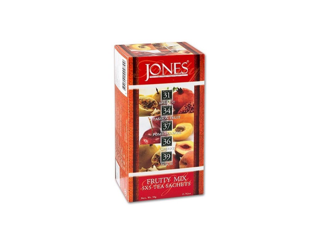 V ponuke značky Jones nájdete čierne, zelené, ovocné a bylinné čaje, vrátane aromatizovaných variantov, ktoré potešia milovníkov klasických aj exotických chutí. Produkty sú balené tak, aby si zachovali čerstvosť, bohatú arómu a autentickú kvalitu čaju.
