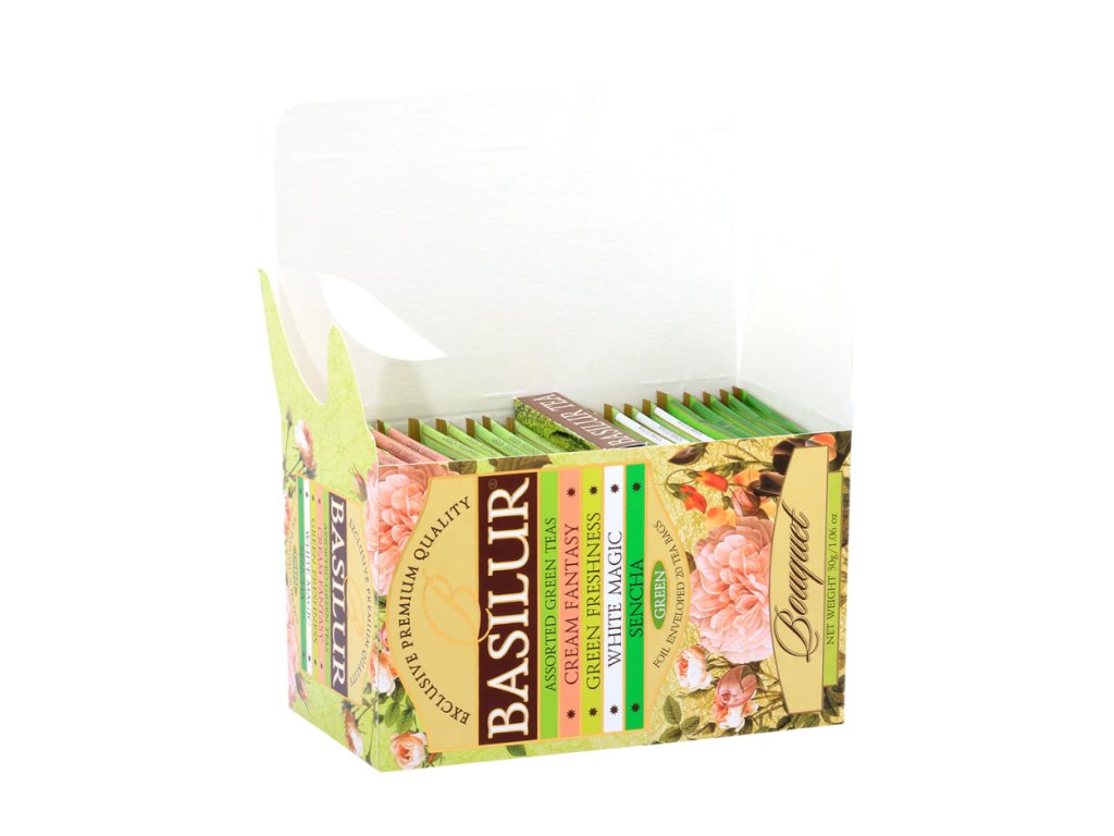 Basilur Assorted Green Bouquet zmes zelených porciovaných čajov.