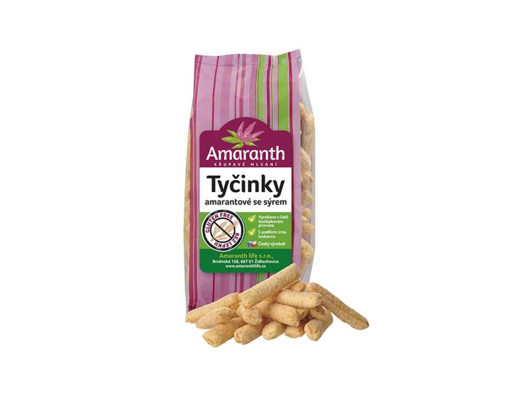 - Extrudovaný snack s amarantovou múkou – textúra chrumkavých tyčiniek, ktorá skvele uspokojí chuť na „zahryznutie“.
