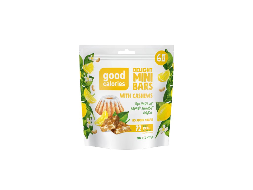 Good Calories mini tyčinky Lemon bundt Cake je zdravý snack s príchuťou domácej citrónovej bábovky.